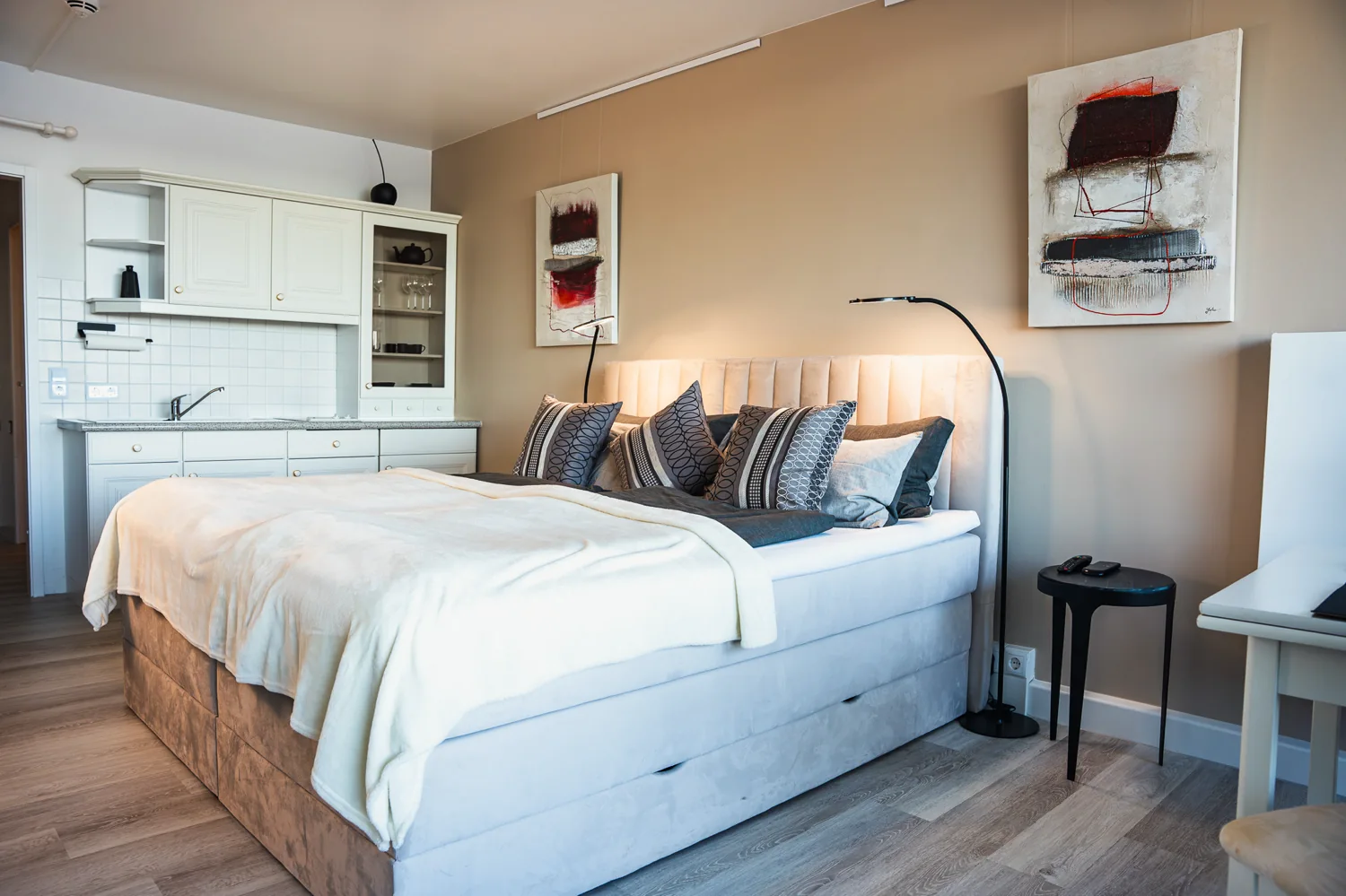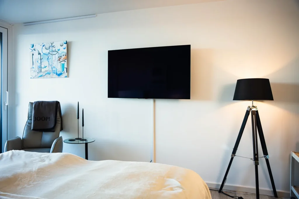 Für Ihren Komfort haben wir an alles gedacht: Ein großzügiges Boxspringbett (2m x 2m) mit Topper sorgt für erholsamen Schlaf, während ein 55-Zoll-LED-Smart-TV von LG für Unterhaltung bereitsteht. Die voll ausgestattete Küchenzeile bietet alles, was Sie für kulinarische Genüsse brauchen – von Espressomaschine bis hin zu Pfannen und Mixbecher.
